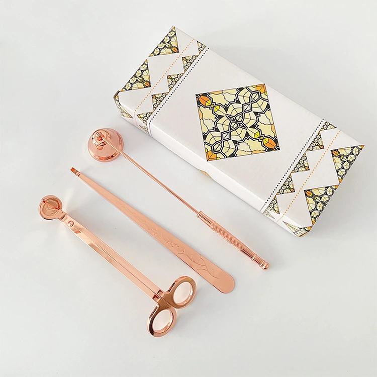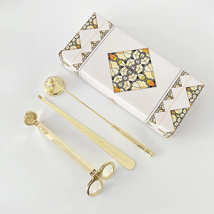 Nanjing FNAT je továrna původem z Číny specializující se na oblast surovin pro svíčky. Naše nástroje na ořezávání svíčkového knotu (sada nástrojů pro péči o svíčkový knot) je prémiová 4dílná sada vyrobená z vysoce kvalitní nerezové oceli s galvanickým pokovováním a ručním leštěním, dostupná ve zlaté, stříbrné, růžové a černé barvě. Obsahuje zastřihovač knotu, tlumič svíčky, naběračku knotu a podnos na svíčku. Nástroje pomáhají ořezávat knoty, bezpečně uhasit plameny a centrovat knoty pro snížení kouře. Elegantní, odolný a praktický, je ideální pro výrobu svíček, každodenní použití a domácí dekorace.
